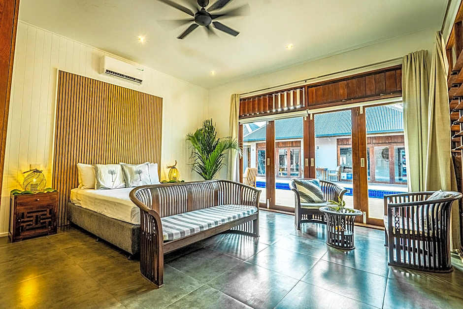 Nestled along Rana Beach in Port-Havannah, this adults-only escape feels like a private island retreat. A private beach area invites morning swims and sunset strolls, with free snorkeling and water sports on site. Two outdoor pools—both saltwater and adults-only, one with a shallow end and the other with a plunge option—plus a sun deck, beach chairs, and a terrace-garden space set the scene for lazy days in the sea breeze.
