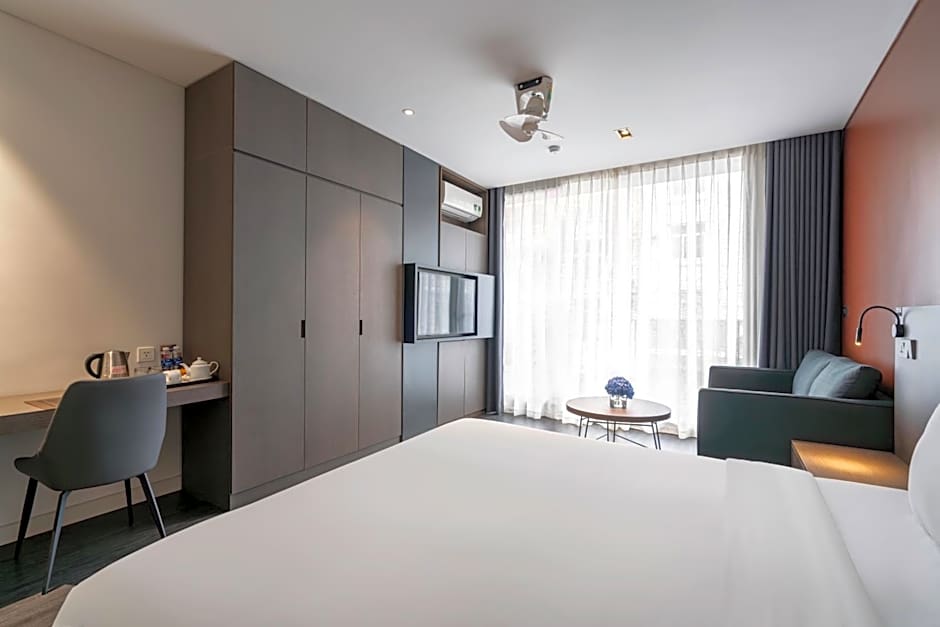 This suite features a fireplace. Boasting a private entrance, this air-conditioned suite features a kitchen, 1 bedroom and 1 bathroom with a bath and a shower. In the kitchen, guests will find a refrigerator, kitchenware, a microwave and an electric kettle. The suite features a washing machine, soundproof walls, a mini-bar, a flat-screen TV with streaming services, as well as city views. The unit has 1 bed.