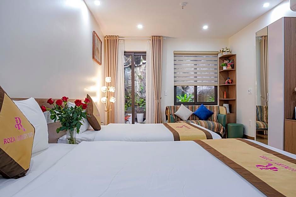 The Roza Palace location is amazing! Very central and walking distance to all 3 beaches! Very unique hotel, lots of green plants , places to relax ! Our room was new and very comfortable,TV has lots of good movies in the English language, WiFi is good too ,and the shower is good ! The staff was so friendly and Hoang at the front desk welcomed us and we felt like home! Hoang speaks very good English and helped us with everything we asked for !He upgraded our room for a better one and makes us feel VIP! Thank you for your hospitality and the gift !