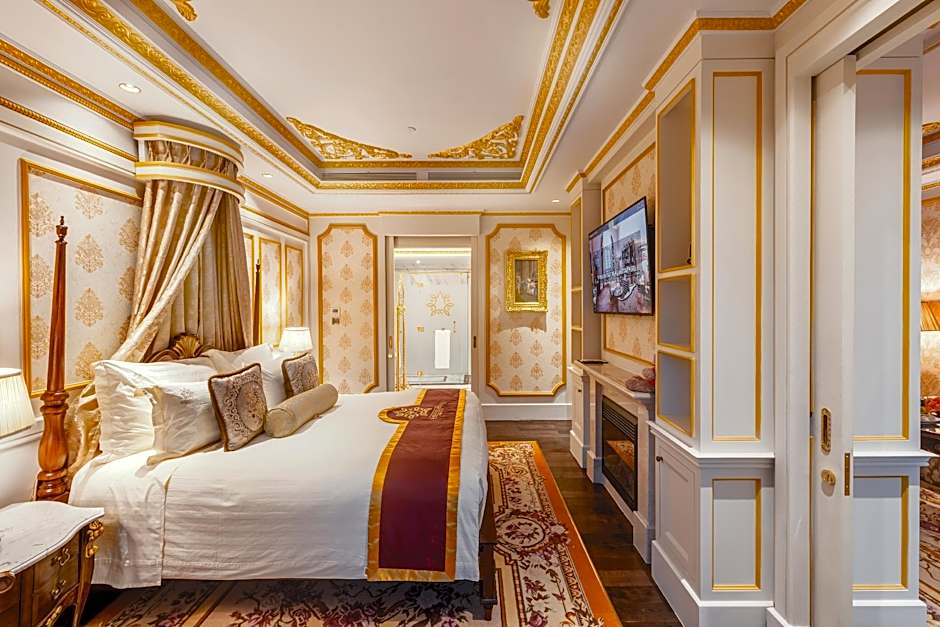 Featuring a separate living area with an open fireplace, these spacious and luxurious suites come with a private balcony, an opulent four-poster bed, a dining area and an private bathroom.