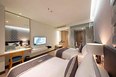 This air-conditioned twin room is consisted of of a flat-screen TV with cable channels, a private bathroom as well as a balcony with city views. The unit has 2 beds.