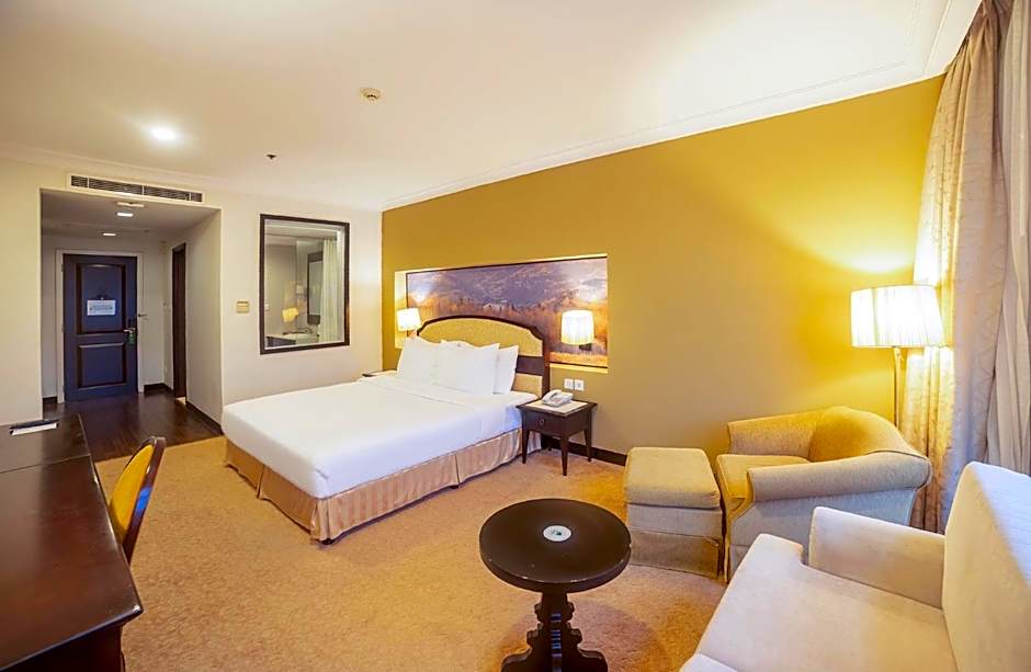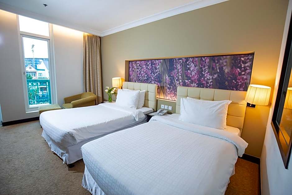 Outdoor spaces offer places to unwind, including a garden and a terrace. Inside, air conditioning and non-smoking rooms keep comfort top of mind, with an elevator providing easy access to higher floors. A diverse range of room types is available, from the 496-square-foot Deluxe Suite with a king bed to the Family City View option that accommodates multiple guests, plus the 323-square-foot Deluxe Queen and the Superior with two twin beds. For larger groups, the Family Junior Suite (484 sq ft) offers substantial space and flexibility, ensuring a pleasant stay for families and friends visiting Đà Lạt.