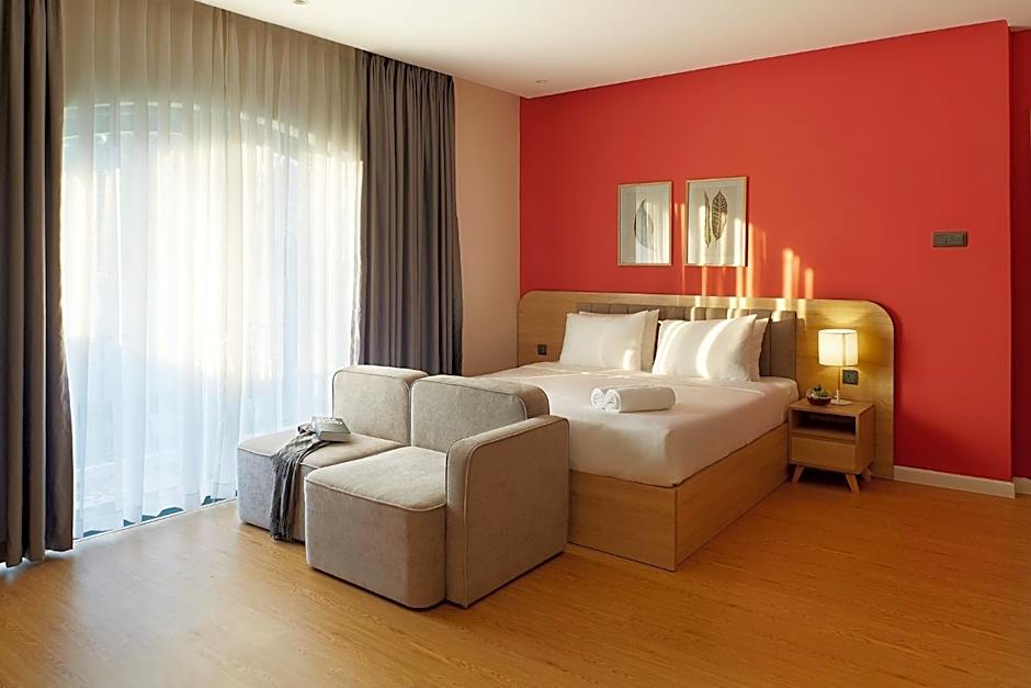 The hotel offers several types of rooms, including Deluxe Rooms, Suites with Balcony, and Family Rooms. All rooms are non-smoking and have a room size of 269 sqft for Deluxe Rooms and 377 sqft for Suites with Balcony and Family Rooms. The Deluxe Rooms accommodate 2 adults and 1 child with a Queen size bed, while the Family Rooms accommodate 4 adults and 2 children with 2 Queen size beds.
