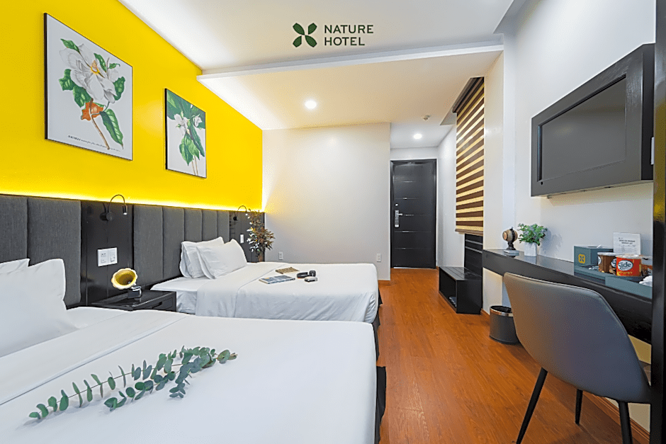Nature Hotel offers a variety of room types. They have Two-Bedroom Suites which can accommodate up to 4 adults, with a queen size bed and two twin beds. They also have Double or Twin Rooms with either a garden view or city view, which can accommodate 2 adults and have a queen size bed and two twin beds. Additionally, they offer Triple Rooms with a balcony, accommodating 3 adults with a twin bed and a queen size bed. All rooms do not allow smoking.