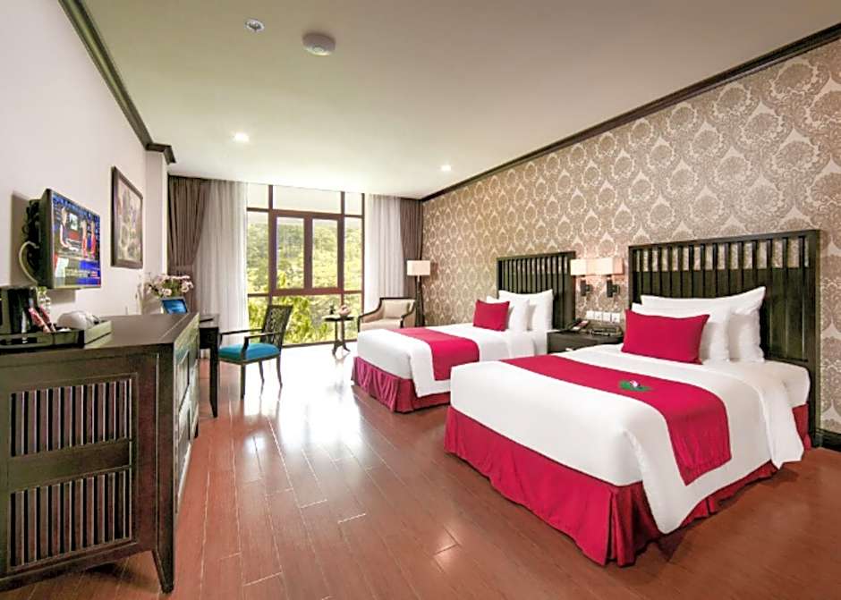 At the Swiss-Belresort Tuyen Lam, one type of room available is the Deluxe Twin Mountain View. This room features two twin beds and has a size of 377 sqft. Smoking is not allowed in this room. It can accommodate 2 adults and 2 children.