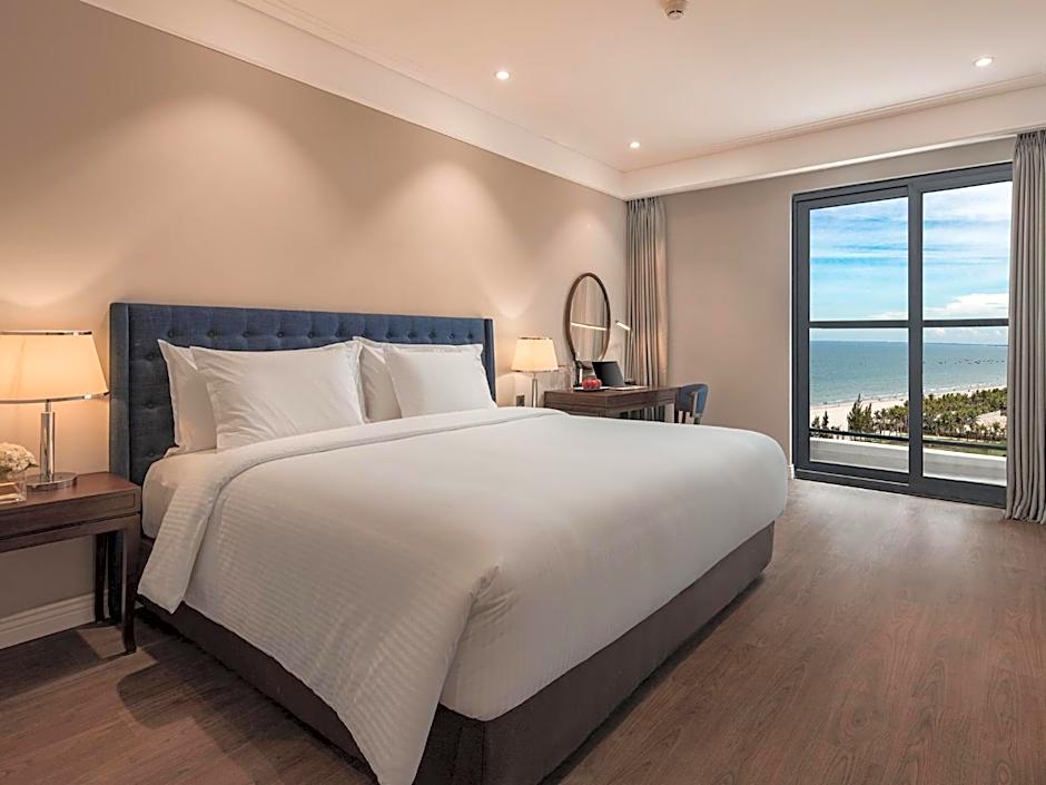 This air-conditioned one-bedroom suite features a private balcony that opens up to views of Son Tra Peninsula. The open plan living area features a lounge fitted with flat-screen cable TV, sofa and a desk as well as a kitchen, dining area and in room laundry. The private bathroom includes a bath or shower, hairdryer and free toiletries.