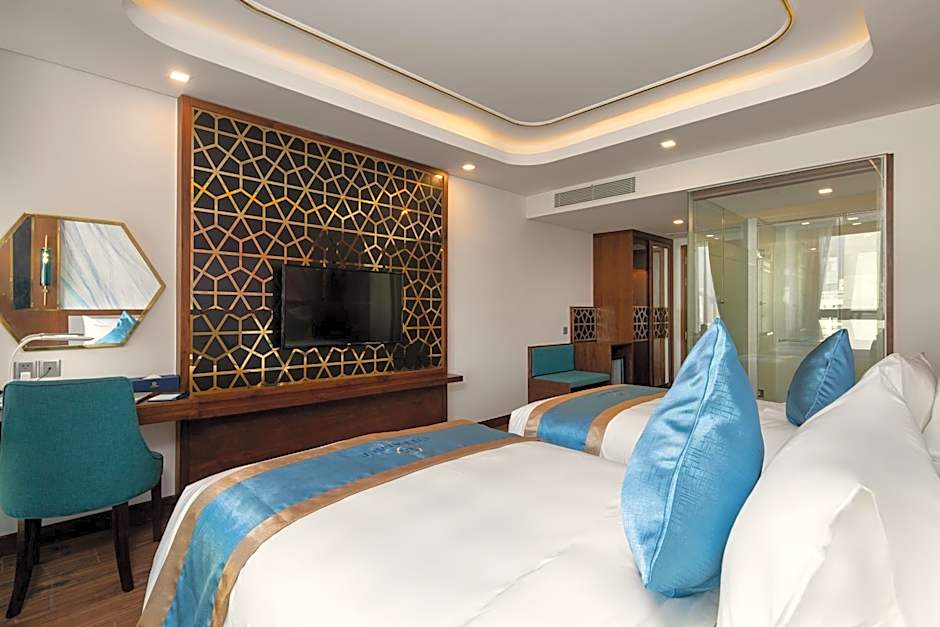 As you bask in the luxurious ambiance of the CN Palace Boutique Hotel & Spa, don’t forget to check out the stunning outdoor rooftop infinity pool exclusively for adults. Imagine floating in serene waters while sipping on a refreshing cocktail, all while soaking in the breathtaking views of Da Nang! The shallow end of the pool welcomes you to relax and soak up the sun or take a refreshing dip as you unwind in style. Whether you're catching up with friends or enjoying a moment of solitude, this rooftop escape will be your new favorite spot.