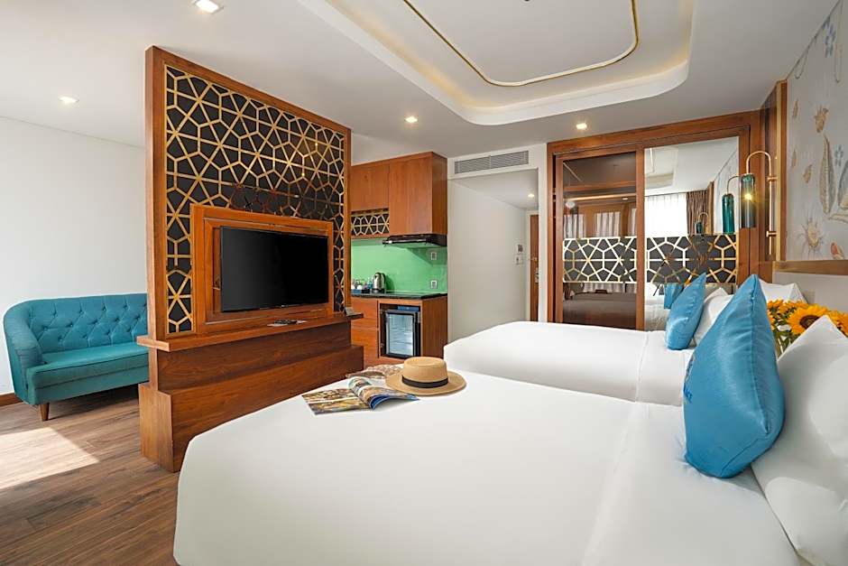 Located at Lot 4,5,6 Pham Van Dong in the An Hai Bac Ward of Son Tra District, your getaway is not only luxurious but conveniently close to the city’s main attractions. Make use of the tour desk to plan your explorations, or simply unwind and admire the views from your soundproof room or terrace. Just picture it—sipping a cocktail on the sun deck or indulging in a relaxing massage after a day of adventure! Whether you’re a solo traveler or a family seeking fun, this hotel is sure to be a delightful experience. Book your stay starting at a fantastic price of just $XXX per night and create memories that will last a lifetime!