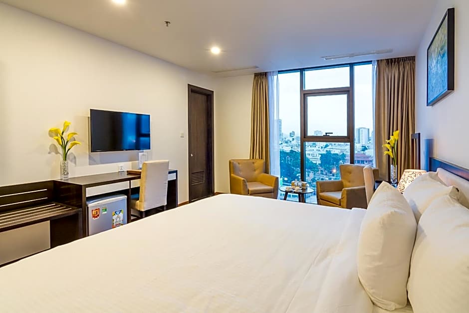 If you desire a bit more space and luxury during your stay, the Deluxe Rooms at Dana Marina Boutique Hotel offer a stylish and spacious environment to relax and rejuvenate. With additional amenities and an inviting ambiance, these rooms provide a perfect balance of comfort and convenience, ensuring a memorable stay for guests looking for a touch of indulgence during their time in Da Nang. Whether you're soaking in the views from your room or unwinding in the cozy setting, the Deluxe Rooms offer a delightful retreat for travelers seeking a bit of luxury.