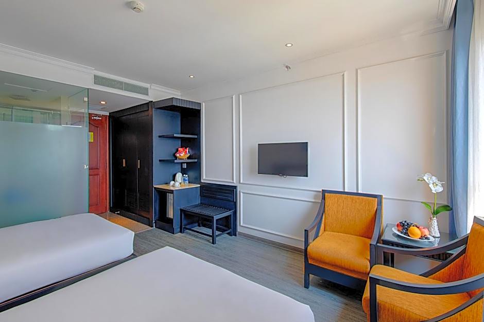 Offering free toiletries and bathrobes, this twin room includes a private bathroom with a shower, a hairdryer and slippers. The air-conditioned twin room offers a flat-screen TV, a mini-bar, a wardrobe, a safe deposit box as well as city views. The unit offers 2 beds.