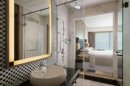 Guest room, 2 Twins, City View, High floor, Balcony (1 King Bed) is 323 square feet and includes either 2 single beds 80-130 width or a king-size bed 150-183 width.