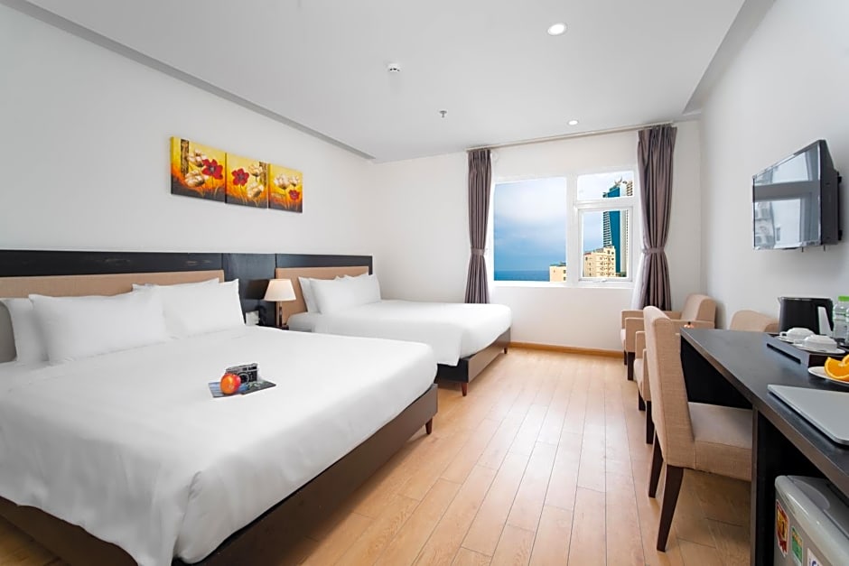 Elegantly-decorated, this triple room offers views of the vast sea. It provides entertainment in the form of a flat-screen cable TV. The air-conditioned room also comes with amenities such as a mini-bar, tea/coffee maker, closet and a work desk. Private bathroom is fitted with a shower. Slippers and towels are provided.
