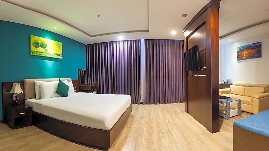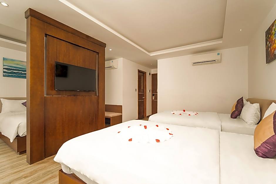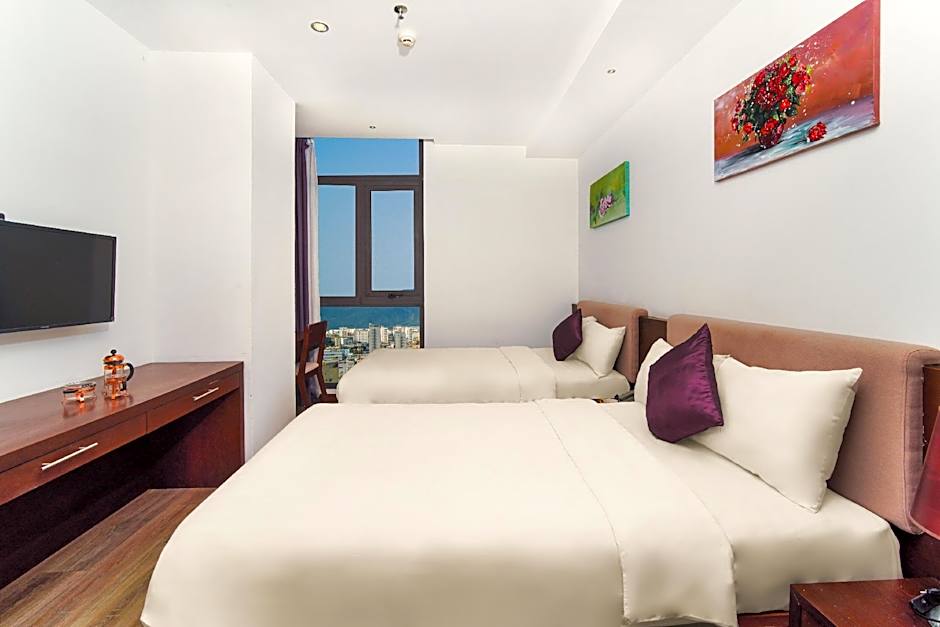 Address: 97 Vo Van Kiet Str, Da Nang, Vietnam. Minimum price starts from per night. Reviews: . Featured amenities include a restaurant, beachfront access, free Wifi, room service, bar, terrace, air conditioning, soundproof rooms, 24-hour front desk, tour desk, elevator, and options such as garden or mountain views, kitchenware, kitchenette, and non-smoking rooms. Shuttle service (extra charges), airport shuttle (extra charges), and meeting/banquet facilities (extra charges) are also available.