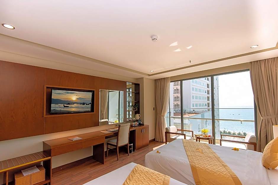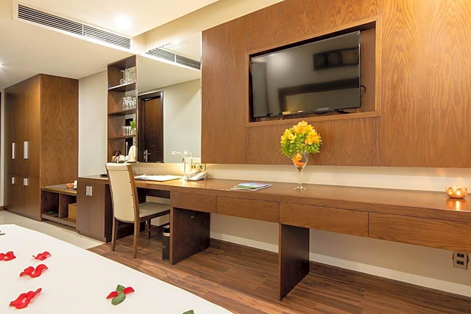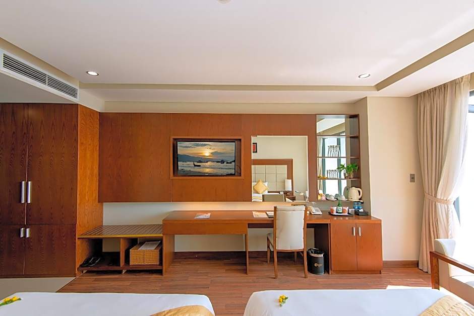 For those seeking relaxation and luxury, the hotel's Executive Suites provide a spacious retreat with a separate living area and a private balcony overlooking the picturesque city skyline or the sparkling sea. After a day of exploring Da Nang, guests can unwind in style and comfort in these well-appointed suites, complete with plush bedding, elegant decor, and premium bath amenities for a truly indulgent experience.