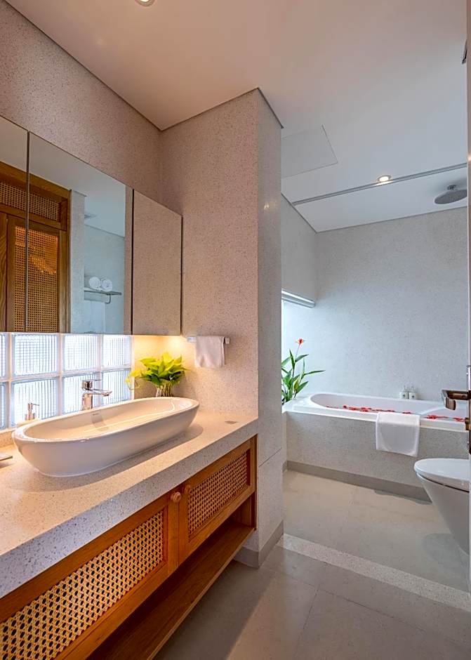 Perched near Da Nang's coast, this property blends easy access to the city with a splash of modern luxury. A rooftop infinity pool, a saltwater oasis reserved for adults, overlooks the water and the skyline, inviting rejuvenating dips as the sun sinks.