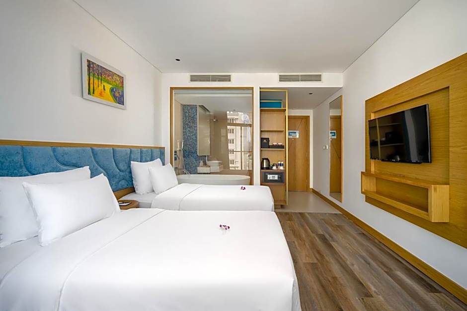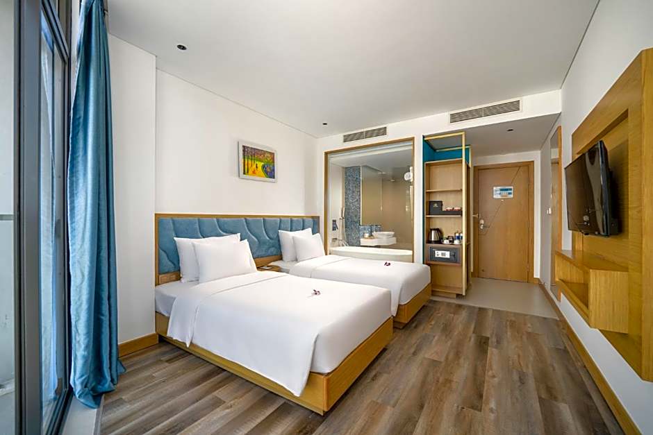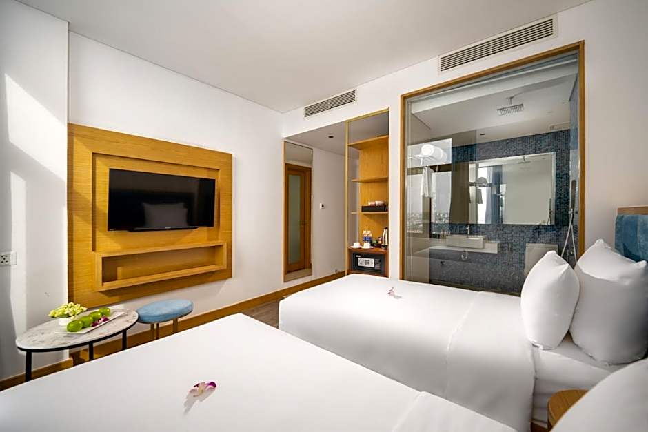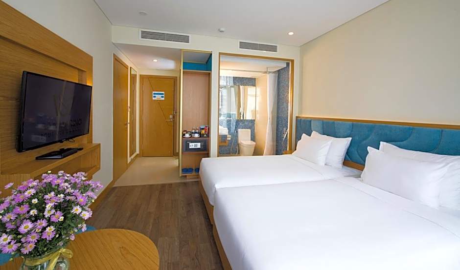 In addition to its well-appointed rooms, San Marino Boutique Danang boasts a rooftop swimming pool with panoramic views of Da Nang. Guests can take a refreshing dip in the pool while enjoying the sights of the city skyline. The hotel also features a fitness center, perfect for guests looking to stay active during their stay. After a day of exploring the city, visitors can relax and unwind with a soothing massage at the hotel's spa, rejuvenating their body and mind.
