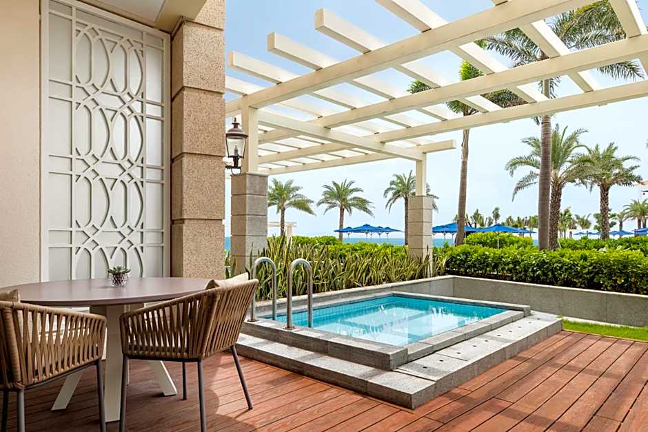 Experience luxury at its finest with a variety of exquisite room types at the . Choose from elegant Deluxe Rooms, spacious Suites, or opulent Villas, each offering a blend of comfort and style. Relax in modern yet cozy accommodations featuring plush bedding, sleek furnishings, and stunning views of either the ocean or the resort's lush gardens.