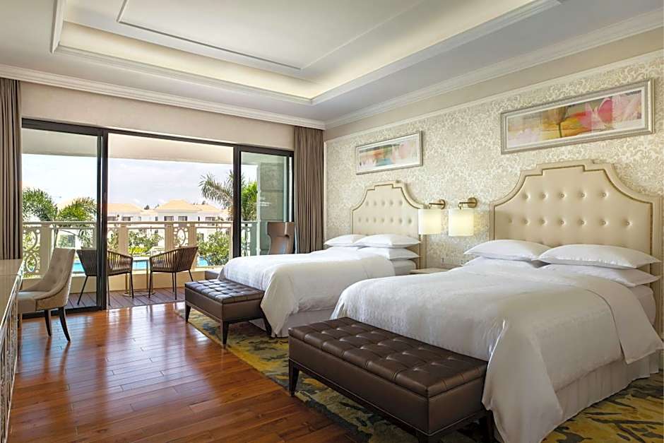 Experience luxury at its finest with a variety of exquisite room types at the Sheraton Grand Danang Beach Resort & Spa. Choose from elegant Deluxe Rooms, spacious Suites, or opulent Villas, each offering a blend of comfort and style. Relax in modern yet cozy accommodations featuring plush bedding, sleek furnishings, and stunning views of either the ocean or the resort's lush gardens.