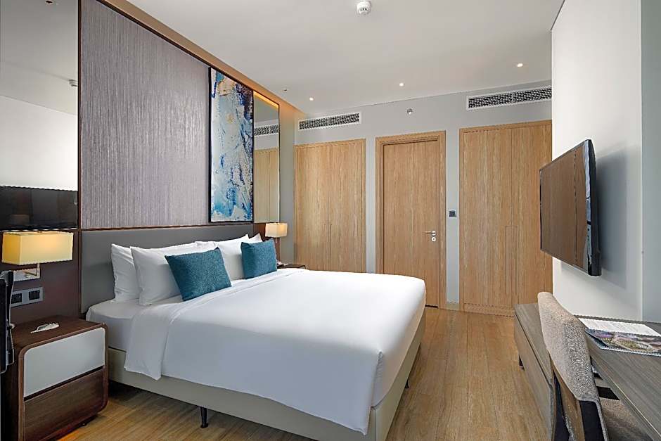 Citadines Marina Halong offers a variety of room types including twin rooms, apartments, and studios. The rooms range in size from 258 sqft to 969 sqft. Smoking is not allowed in any of the rooms. The occupancy accommodates 2 adults and 1 child in all rooms, with some apartments able to accommodate up to 6 adults and 3 children. The bed sizes vary, with options of twin beds, queen size beds, and king size beds.