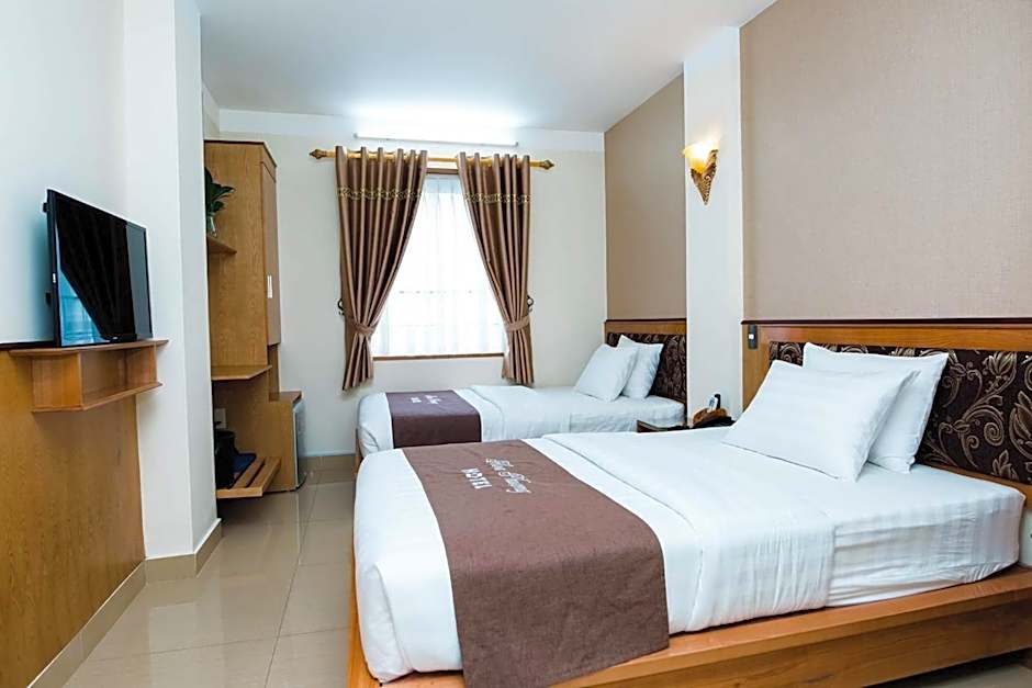 Hoa Phuong Hotel offers Deluxe Double Rooms with a queen-size bed, accommodating up to 2 adults and 1 child. Smoking is not allowed in these rooms. They also have Deluxe Twin Rooms with 2 twin beds, accommodating the same number of guests. These rooms have a size of 215 sqft and also do not allow smoking.