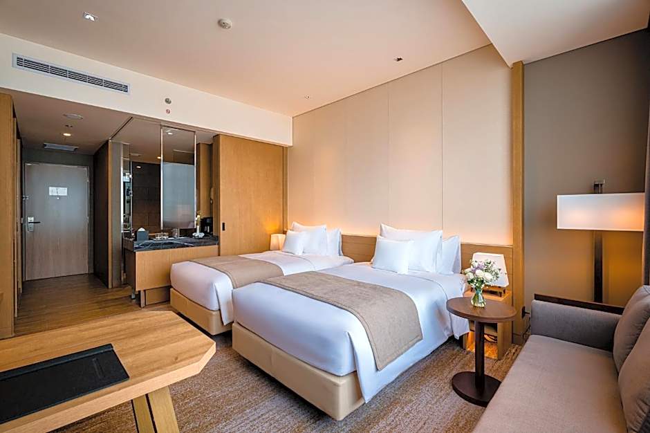 Featuring free toiletries and bathrobes, this twin room includes a private bathroom with a walk-in shower, a bath and a bidet. The spacious air-conditioned twin room features a flat-screen TV with cable channels, a mini-bar, a seating area, a wardrobe as well as city views. The unit has 2 beds.