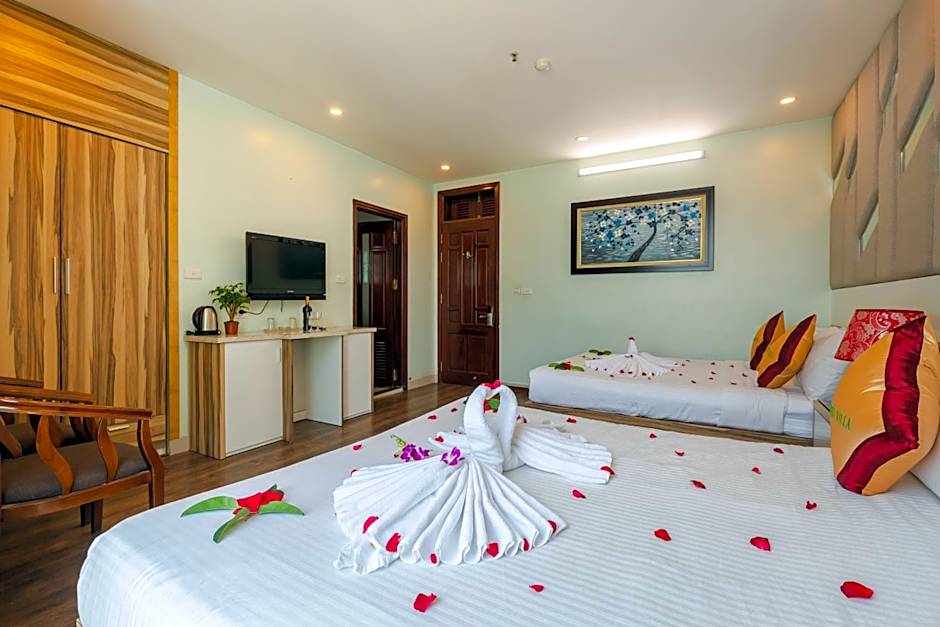 Room choices span several categories. The Superior Queen is 270 square feet and sleeps two adults and one child with a Queen bed. Deluxe, 1 Bed clocks in at 302 square feet and also accommodates two adults and one child. The Vip, Double option features a 1 Double bed for two. For larger setups, the Superior 2 Queen offers two Queen beds, while the Vip 2 Double provides two Double beds. The Deluxe Family is 431 square feet and fits two adults and one child, and the Superior Family at 377 square feet is another roomy option; the standard Superior and other Deluxe configurations accommodate two adults and one child in various layouts.