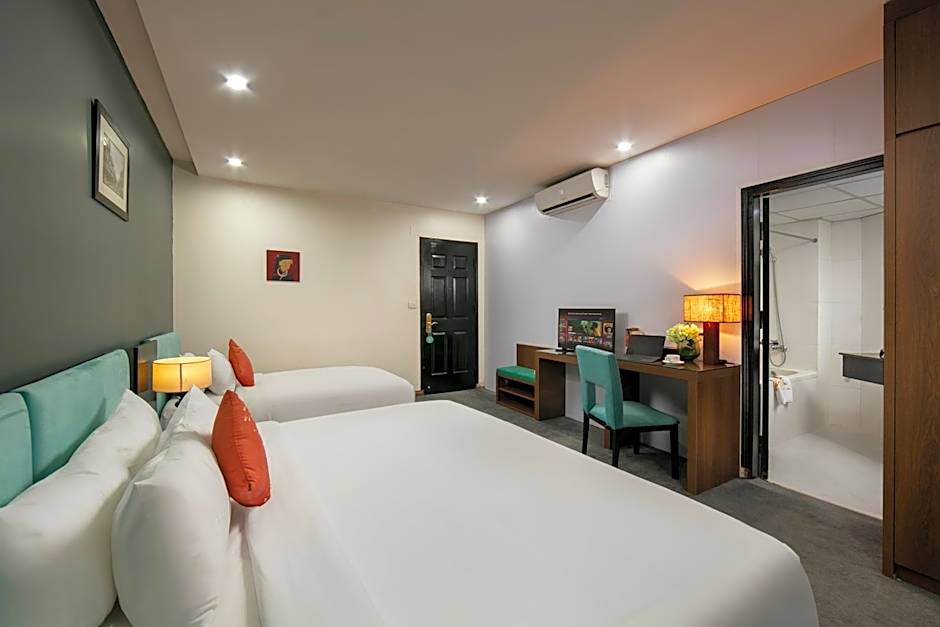 The Anise Hotel & Spa Hanoi offers Deluxe Double or Twin Rooms with City View. These rooms are non-smoking and can accommodate up to 2 adults. They feature a room size of 301 sqft and include 1 King size bed or 2 Twin beds.