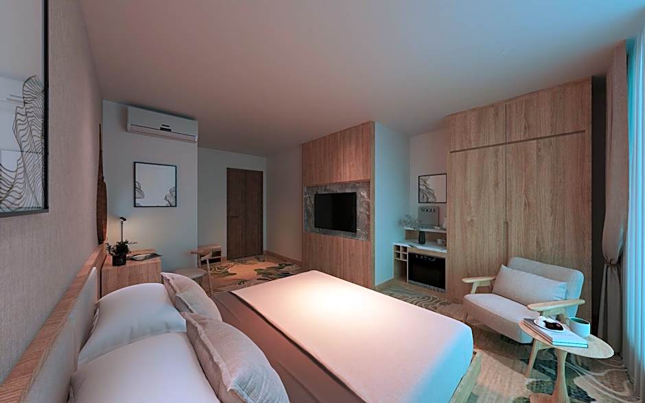 Travelers can choose from a diverse lineup of accommodations: Queen Room, Garden View (377 sqft) sleeps 2 adults with a king bed; Queen Room (431 sqft) sleeps 2 adults with a queen bed; Studio, Twin (377 sqft) sleeps 2 adults and 1 child with a twin bed; Deluxe Studio (431 sqft) sleeps 2 adults and 1 child with a king bed; Apartment, 1 Bedroom (538 sqft) combines a living area with a sofa bed and a king bed to sleep 2; Deluxe Apartment (506 sqft) accommodates 2 adults and 1 child.
