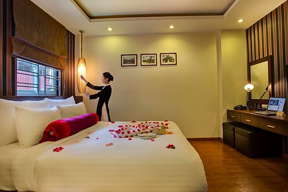 The location is excellent, close to everything in the Old Quarter but hidden away down a relatively quiet street so was much quieter than many of the other hotels in the area. The staff were friendly. The room was a good size, comfy beds, clean and the bathroom was massive with a large walk-in shower. The breakfast was basic but tasty, in particular the pho. They looked after our luggage without any fuss when we went off to Ha Long Bay for a couple of days.
