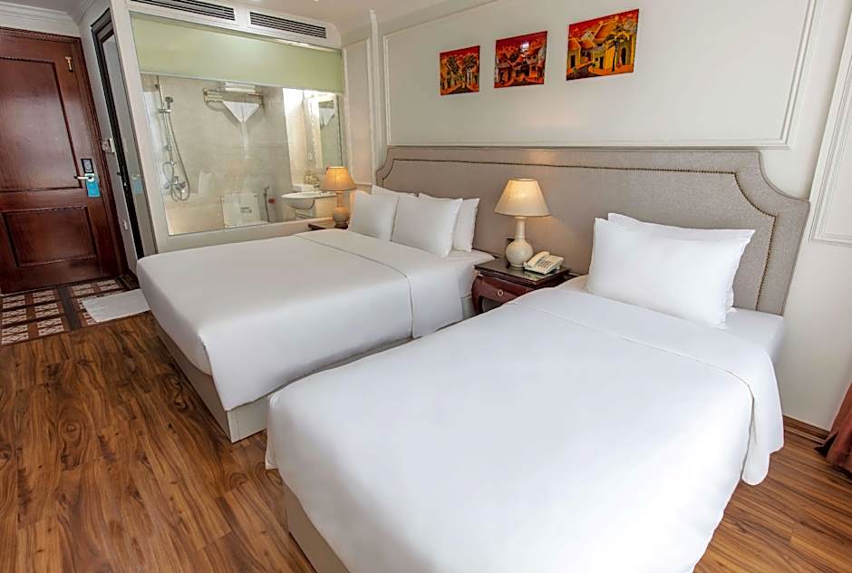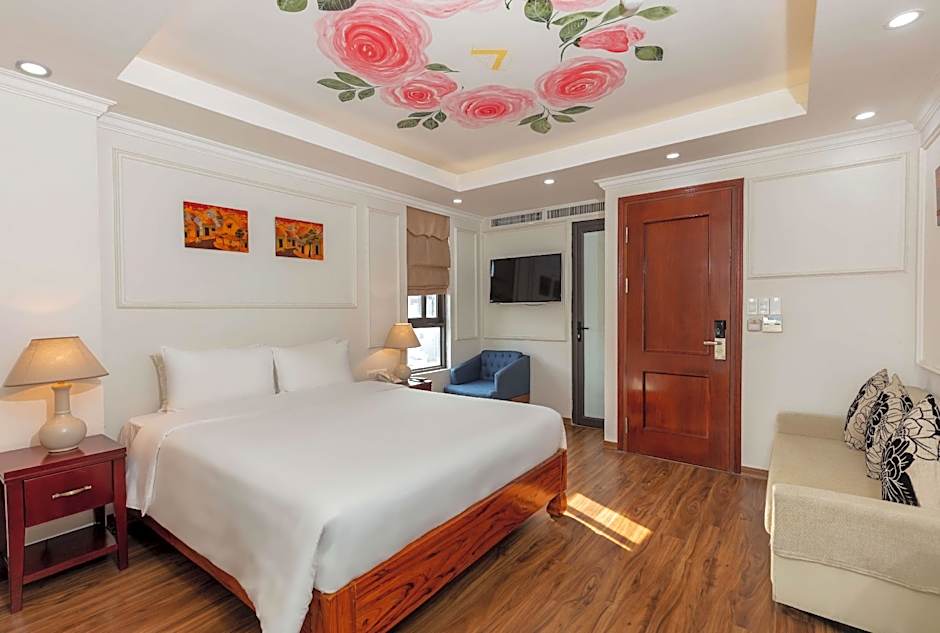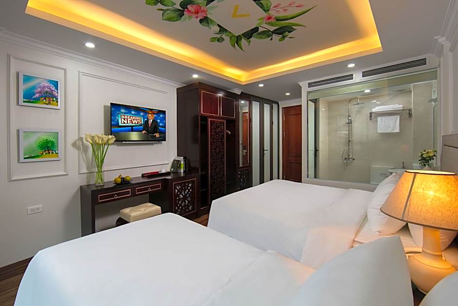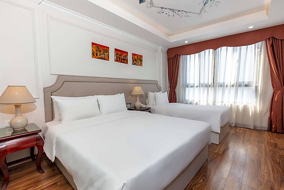 I stayed here twice with my family during our trip to Hanoi. Breakfast was amazing. Free, available from 6:45 - 9:30, and includes a buffet as well as orderable dishes such as pho, eggs and pancakes. I looked up outside breakfast options beforehand, but we never ended up using them as breakfast at the hotel was so good! The rooms were very clean and comfortable. The mattresses were the perfect softness so I slept well. The rooms were cleaned and the sheets and towels were changed everyday. The murals on their walls and ceilings were really beautiful! We booked rooms with no windows, but it wasn't an issue at all. The location was really convenient - only a couple minutes walk from Hoan Kiem Lake, and it was easy to get taxis. And finally, the staff, especially Apple and Daisy, were absolutely lovely! They were always so helpful with bags, doors, suggestions - you name it! The front desk is always manned so there was always a familiar face to greet us every time we left and came back to the hotel.
