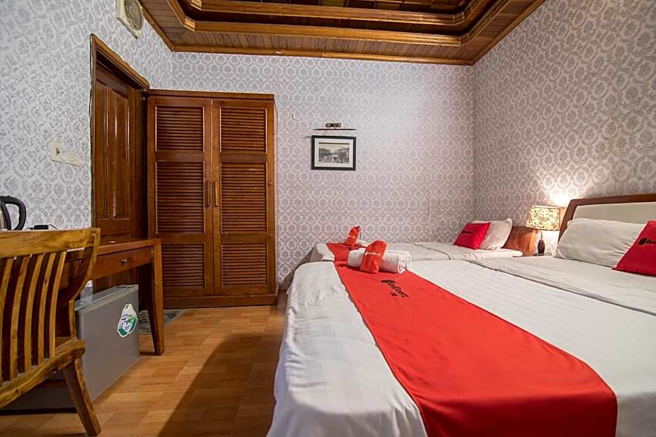 The night receptionist spoke no English and was very rude the rooms very extremely sub standard not clean terrible bedding lumpy hard beds holes in the flooring dim lights paint pealing bad smell it is listed close to the lake and it was a 25 minute taxi ride we booked a triple room and got 2 rooms a floor apart the receptionist said she could call a taxi for us and didn’t the listing was inaccurate in most reguards the lobby was dirty the address wasn’t listed and we had a difficult time finding it