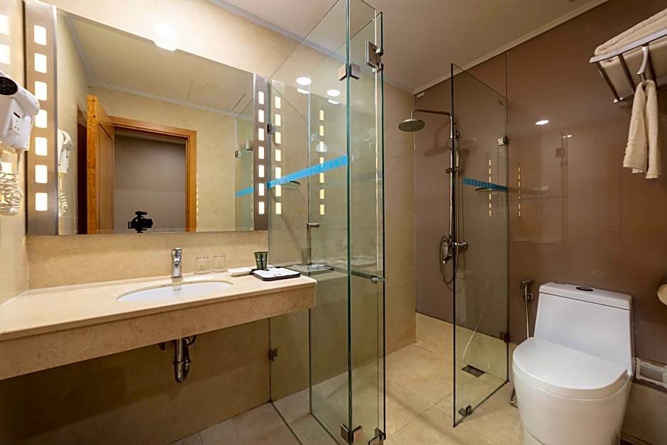 Experience comfort and style in the Standard Suite at Halo Hanoi Hotel. This spacious suite spans 215 square feet, providing ample room for relaxation. With a Queen-size bed, it can accommodate two adults comfortably. Smoking is not allowed in this room, ensuring a fresh and pleasant atmosphere for all guests. So whether you're traveling with a loved one or enjoying a solo adventure, the Standard Suite offers a cozy retreat after a day of exploring the vibrant city of Hanoi.