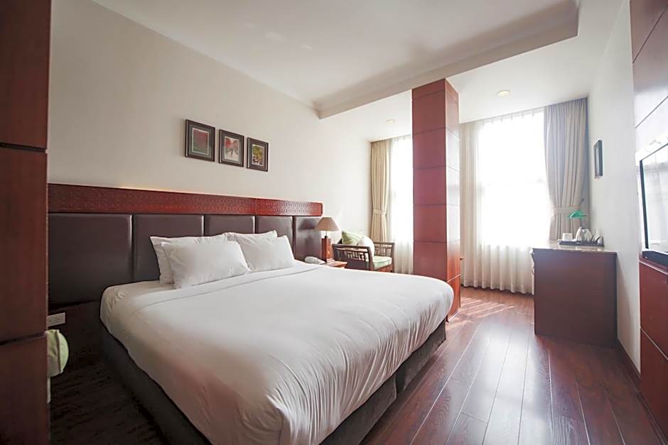 Very friendly staff, especially Rosie, who took care of us from the very first day. The hotel is in a perfect location — central yet quiet. The rooms are nicely and adequately furnished. Breakfast was also very good, with eggs prepared in various ways according to the menu. The hotel can also arrange a number of trips at very reasonable prices, for example to Ha Long Bay. It was our second hotel in Hanoi, and it was definitely the better one. Highly recommended