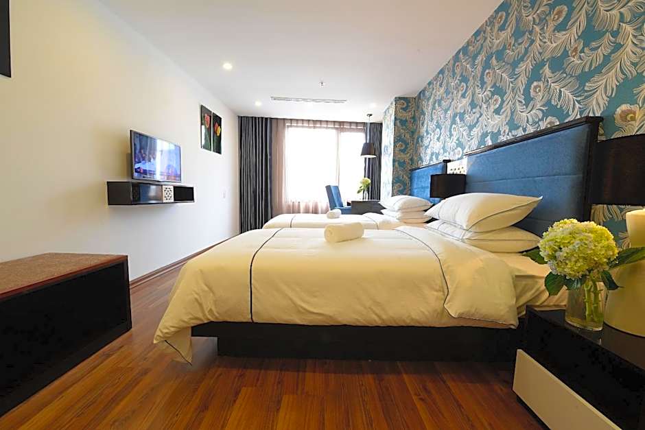 The layout of these rooms were very efficient. It felt very spacious and there was plenty of bathroom counter space for toiletries. Kim was wonderful in helping us arrange our activities and responded very quickly to messages and the hotel staff were so friendly. We really miss this kind of customer service in the US. Some areas for improvement we would make is there are not enough electrical outlets next to the bed to plug our phones or other devices. Also the blow dryer in our room was too weak. Other than these minor inconveniences, we were very happy with our stay and would highly recommend it to anyone looking for a hotel while in Hanoi. Thank you Emerald Waters staff for your friendly and helpful service during our trip!!