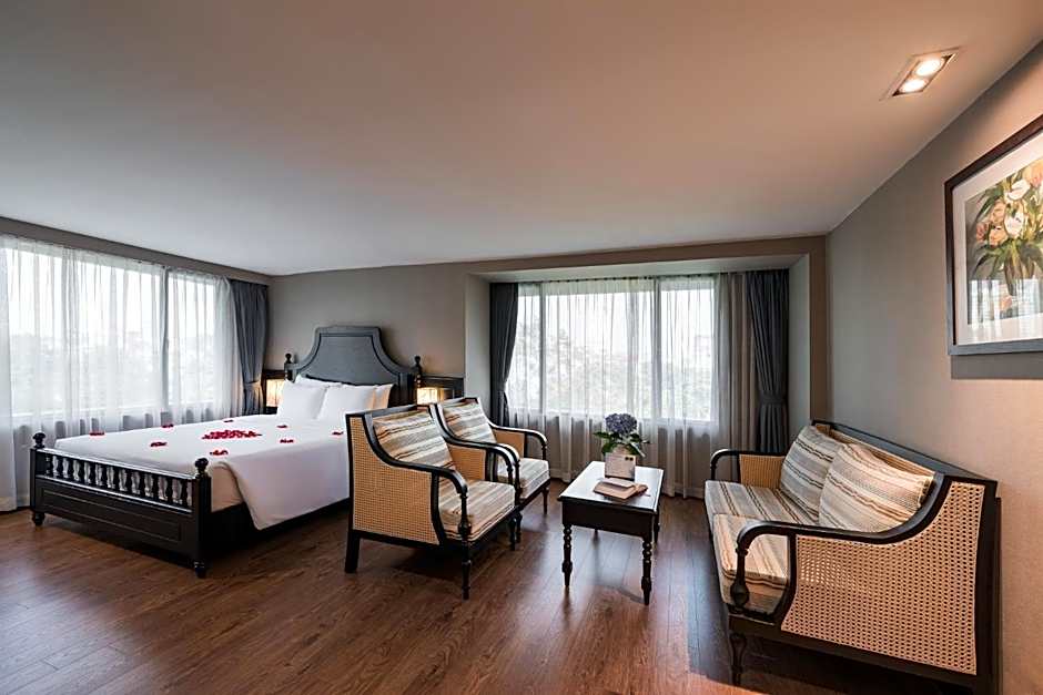 This air-conditioned room opens up to views of Hanoi's historic Old Quarter. Fitted with soundproof windows, the room is also equipped with a flat-screen satellite TV, sofa and a mini-bar. The private bathroom includes shower facilities, a hairdryer and free toiletries. Complimentary fresh fruit, flowers and tea/coffee making facilities are provided.