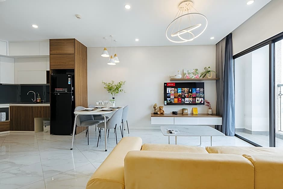 This is more of an AirBnB style apartment, not like a serviced apartment property with its dedicated staff. We expected a smoother check-in process but the process wasn't smooth. We had to pay 3% for card payment and left 500,000 VND deposit. We got the deposit back though The AirBnB style also means you get a key to the elevator but no key to the apartment door. Rather, you use a password that you enter on the doorknob (but it was modern).