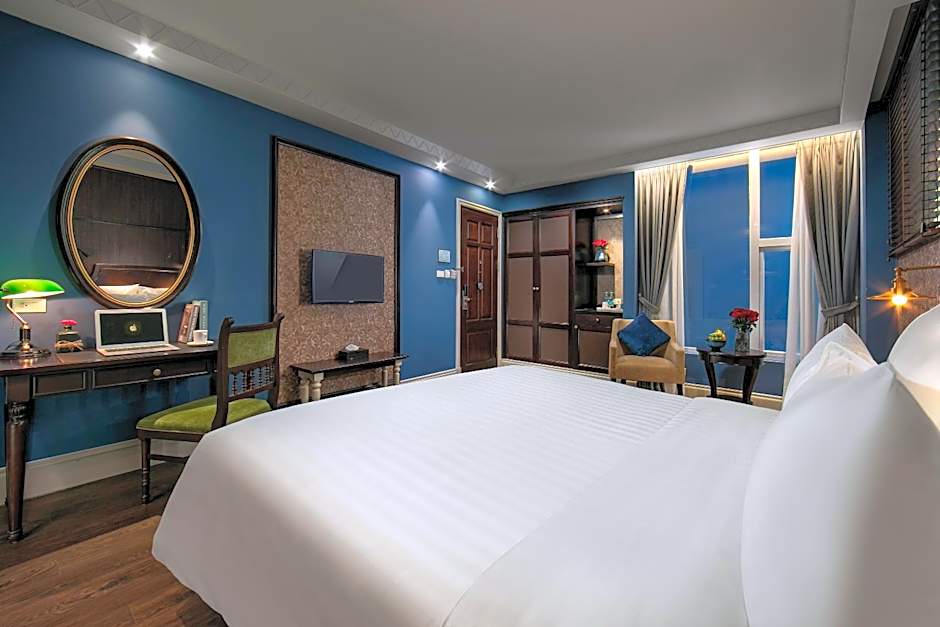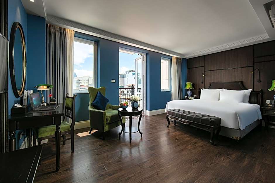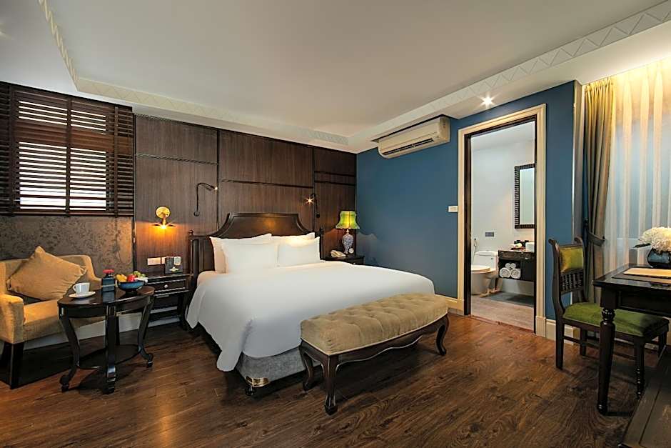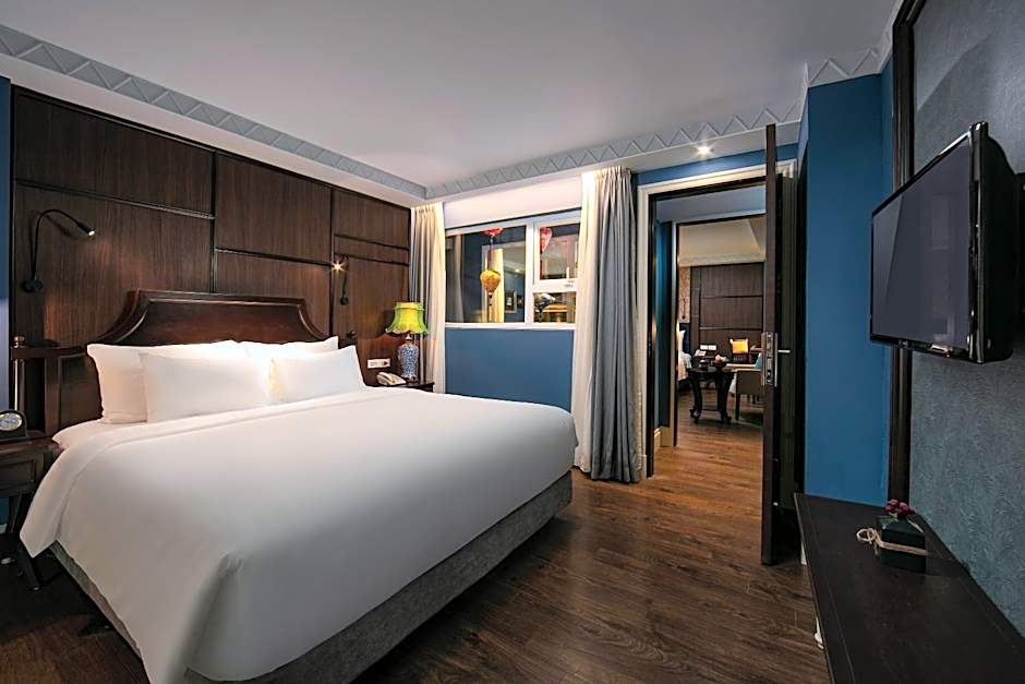 This suite offers views over Hanoi Old Quarter and the surrounding landscape through large windows. Providing plenty of natural light, this suite comes with a separate living area. The suite features white walls, wooden flooring, and silk curtains. Marble private bathrooms each feature a full-size bathtub.
