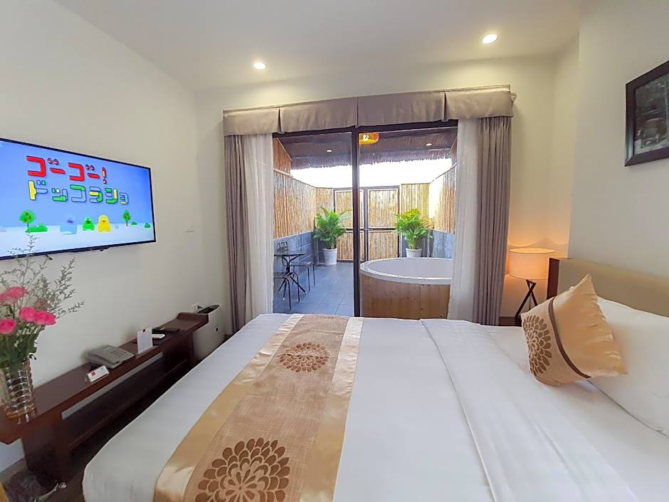 The hot tub and sauna are the standout features of this single room. Featuring free toiletries and bathrobes, this single room includes a private bathroom with a walk-in shower, a bath and a bidet. In the well-equipped kitchen, guests will find a refrigerator, kitchenware, a microwave and an electric kettle. This air-conditioned single room comes with a dining area, a flat-screen TV with cable channels soundproof walls and a terrace. The unit has 1 bed.