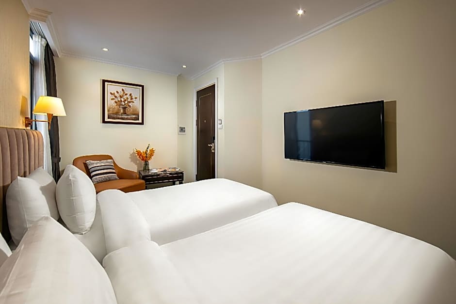 My adult son and I stayed for two weeks in June 25, splitting out time between Hanoi and Hoi An. This hotel was in a great location within walking distance of the main tourist areas such as train street, beer street, night markets etc. Nice rooms with fridge, great shower and air con. Lovely rooftop bar and pool and breakfast food was delicious - a great choice of hot and cold to satisfy most people. I slept really well every night. Staff were AMAZING! So friendly and go out of their way to make you feel welcome, even the kitchen staff would wave and nod if they saw me. Miss Daff and Miss Tracy helped with local questions, and trips to Ninh Binh and Halong Bay because some of the cheaper options you get what you pay for (long waiting time, bigger crowds etc) and these trips we organised through them were fabulous. The hotel gave us a small gift when we left them and it was hugs and handshakes all round while they navigated us across the mental traffic to our waiting taxi. What a fabulous adventure we had, and we would definitely recommend to other travellers.