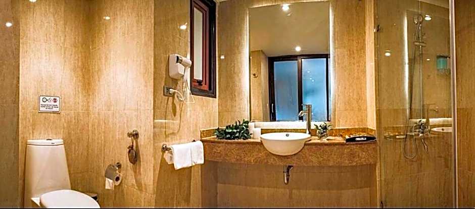 At the rooftop level, an all-season outdoor pool offers sun-soaked days with a view of Hanoi’s skyline. The on-site Rooftop Restaurant, set in a traditional ambience, serves Asian and International cuisines, making lunch or sunset dining easy without leaving the hotel.