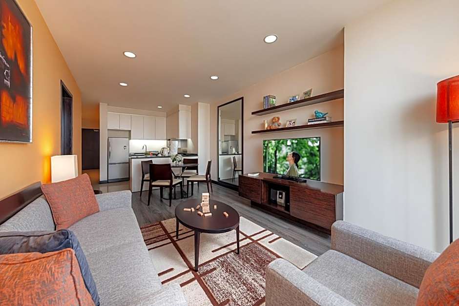 The hotel offers Executive One-Bedroom and Deluxe One-Bedroom Apartments, as well as an Executive Studio and Executive Two-Bedroom Apartment. Smoking is not allowed in any of these rooms. The rooms accommodate between 2 to 4 adults and 1 to 3 children, with bed options ranging from King size to Twin beds.
