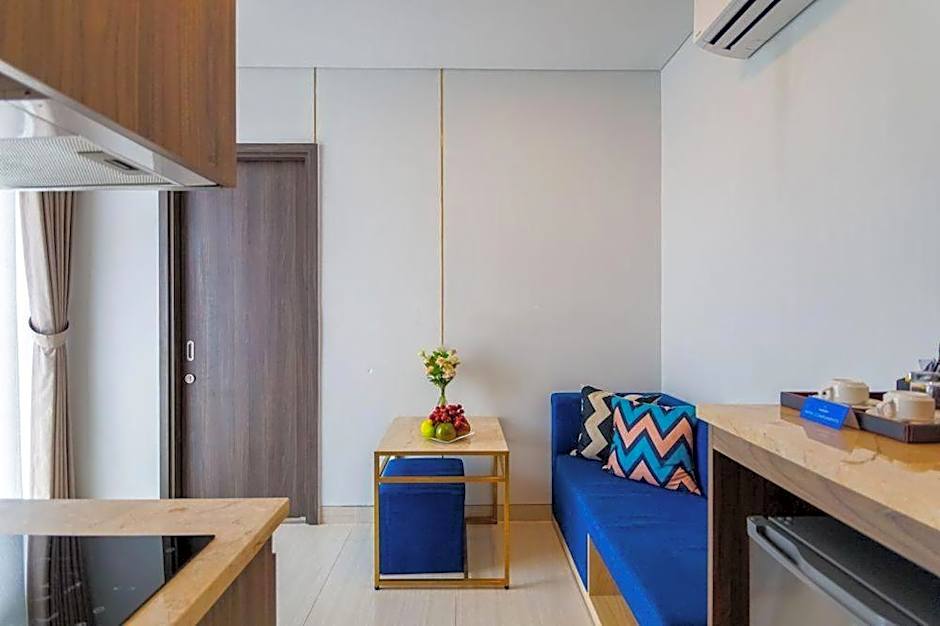 This suite's special feature is the rooftop pool. This suite consists of 1 living room, 1 separate bedroom and 1 bathroom with a walk-in shower and free toiletries. Guests can make meals in the kitchen that is equipped with a refrigerator, kitchenware, a microwave and an electric kettle. The air-conditioned suite provides a flat-screen TV with cable channels, a washing machine, soundproof walls, a mini-bar as well as city views. The unit offers 1 bed.