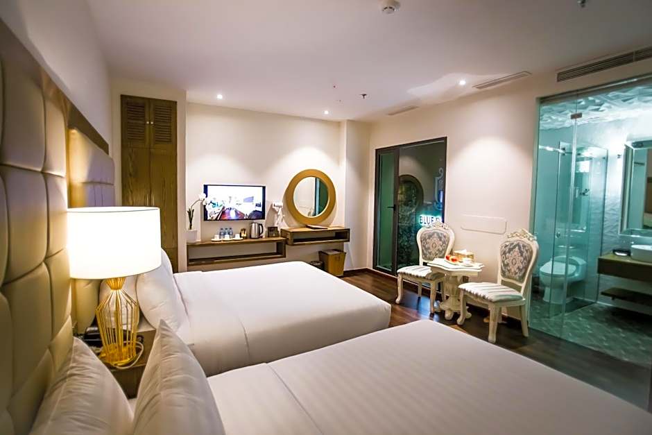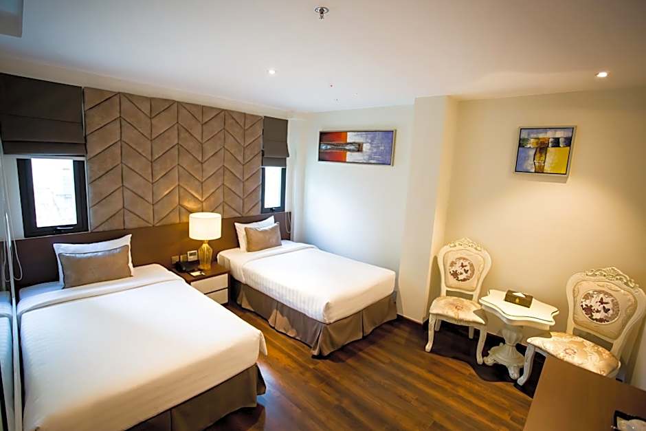 Blue Diamond Luxury Hotel offers a variety of rooms, including Executive Double, Grand Luxury Suite, Deluxe Double, Deluxe Twin, and Deluxe Triple. All rooms do not permit smoking and can accommodate either 2 adults and 1 child or 3 adults and 1 child. Bed sizes range from Queen size beds to Twin beds, and room sizes vary from 280 to 377 sqft.