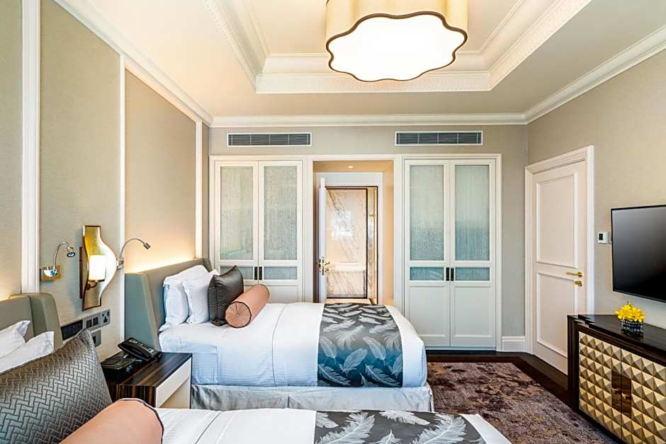 The two-bedroom Suite is located in the historical Heritage wing, and extend a balcony with stunning views of Saigon. You will enjoy the comfort of the large living room with the pleasure of the Nespresso facilities and the latest technology, a king size and a twin bedded room with the Signature Beds, each with its own bathroom, providing the relaxing experience of the walk-in shower. You will have access to the Signature Lounge, for Sunrise breakfast, all day refreshments, Sunset Cocktails and a dedicated Butler Service.