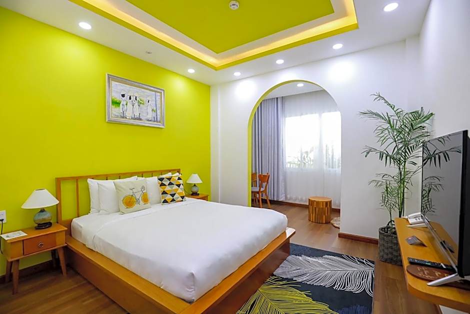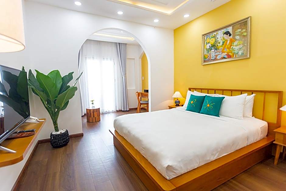 The hotel offers a Suite Indochine Balcony, which is a double room with a Queen size bed and a room size of 377 sqft. Smoking is not allowed in this room. It accommodates 2 adults and 1 child.