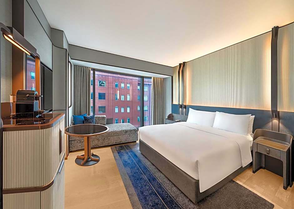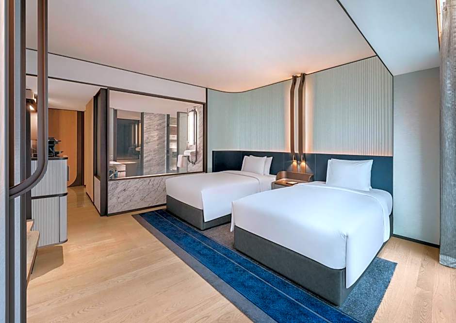 The spacious air-conditioned suite provides a flat-screen TV, a tea and coffee maker, executive lounge access, a safe deposit box as well as city views. The unit offers 1 bed.