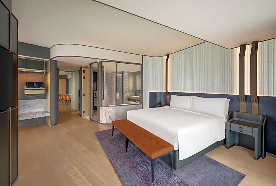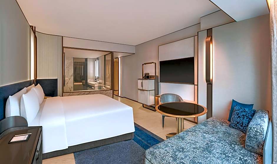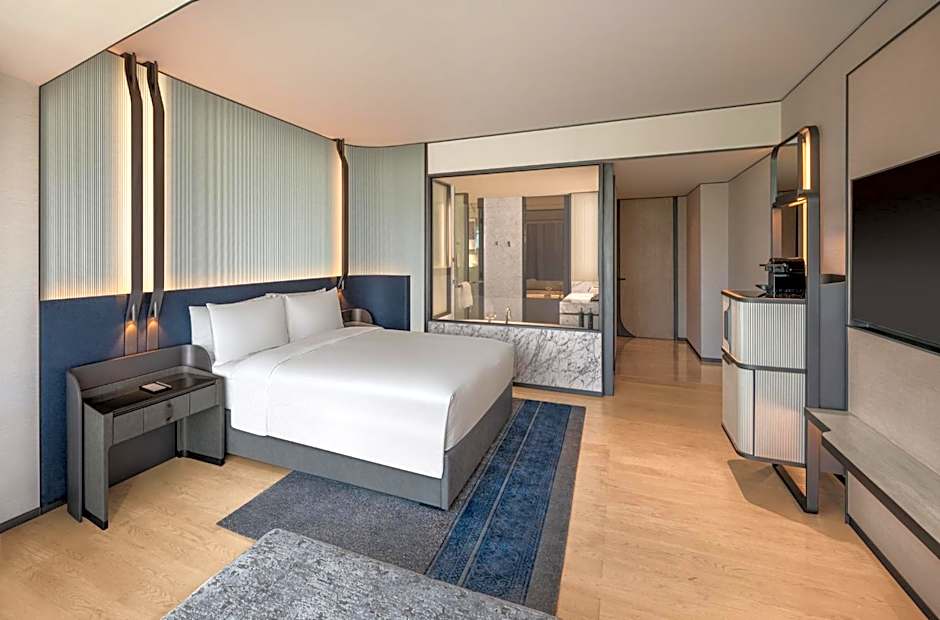 The spacious air-conditioned suite features a flat-screen TV, a tea and coffee maker, executive lounge access, a safe deposit box as well as city views. The unit has 1 bed.