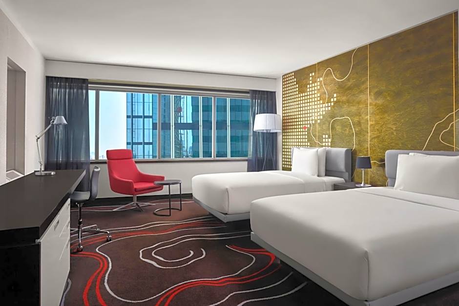 Guests will have a special experience as this double room provides a pool with a view. Offering free toiletries and bathrobes, this double room includes a private bathroom with a walk-in shower, a bath and a bidet. The spacious air-conditioned double room offers a flat-screen TV with cable channels, a mini-bar, executive lounge access, a wardrobe as well as city views. The unit has 2 beds.