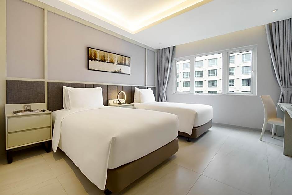 The spacious air-conditioned twin/double room offers a flat-screen TV, a mini-bar, a wardrobe, a safe deposit box as well as city views. The unit offers 2 beds.