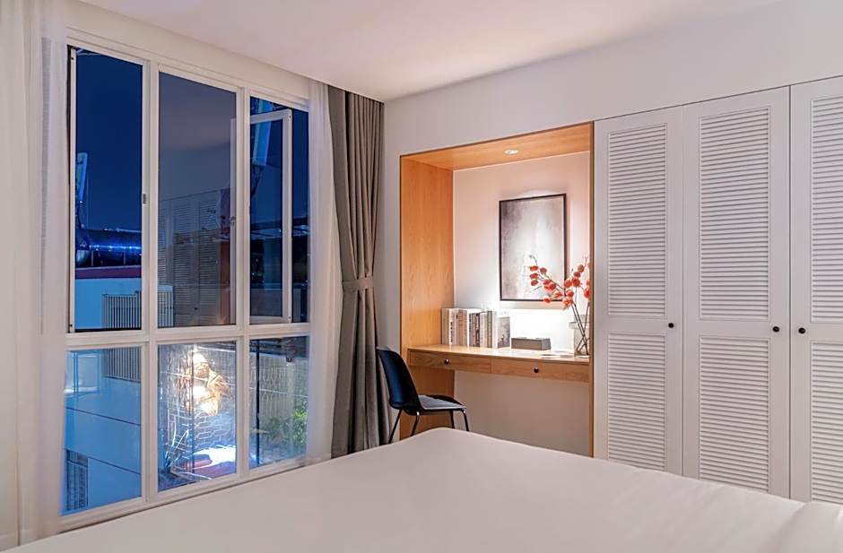 My husband and I were staying in the deluxe room. When we first opened the door, we were greeted by a very homey dining area with a fully functional kitchenette. The hotel provides two sets of utensils and dishware, as well as a pan and a soup pot. The washroom is very clean and well equipped with all the items one needs. A comfortable living space area with a couch for 2 and a coffee table not far away from the bed. There's a full-size wardrobe with a steam iron and an ironing board just tucked inside the wardrobe, along with two bathrobes and a few hangers. Last but not least, their bed is one of the most comfortable beds we’ve ever slept on. All clean sheets and soft smooth pillows. Upon arriving the hotel, there's an outdoor lounge area surrounded by plants just outside of the reception, nice place to chill around. There's also a laundry area with two washing machine and two dryers which all in-house guests are welcomed to use at anytime for free! What a bonus 👍👍 The staff also told us that there is a cafe just right behind the lobby with an aesthetic interior and great coffee I believe. Vietnamese are truly one of the most beautiful, most friendly and helpful people we have encountered in our many trips overseas. One of the ladies at the reception offered to put my clothes in the dryer and even folded them nicely and put them in the basket for me to bring up to my room. It's the little gestures and thoughts that count 🥰 I also had a dress made in the market and they received it for me from the lobby and sent it straight to our door. Overall, my husband and I really enjoyed our stay here and we appreciate all the staff who have gone out of their way to make our stay so comfortable. Will definitely come back again the next time we’re in Vietnam.